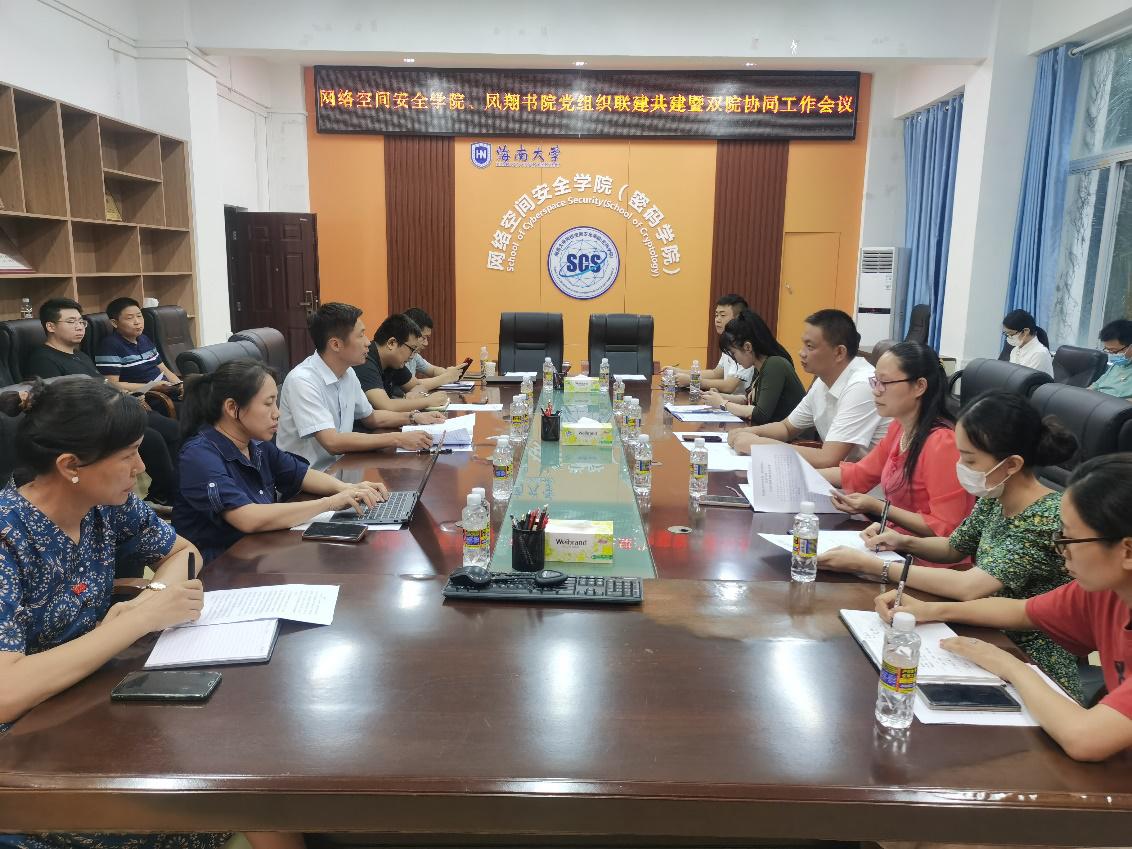 为进一步增强基层党组织战斗力,大力推动党建创新,发挥党员的先锋模范作用,加强书院与学院工作协同,9月27日下午,凤翔书院、网络空间安全学院(密码学院)联合召开党组织联建共建暨双院协同工作会议。书院党委副书记(主持党委工作)王华伟、学院党总支书记陈广锐、副院长周晓谊、张殿、胡昌慧,书院全体辅导员、学院教师党员代表、学生代表参会。会议由凤翔书院正处级辅导员梁丽仪主持。