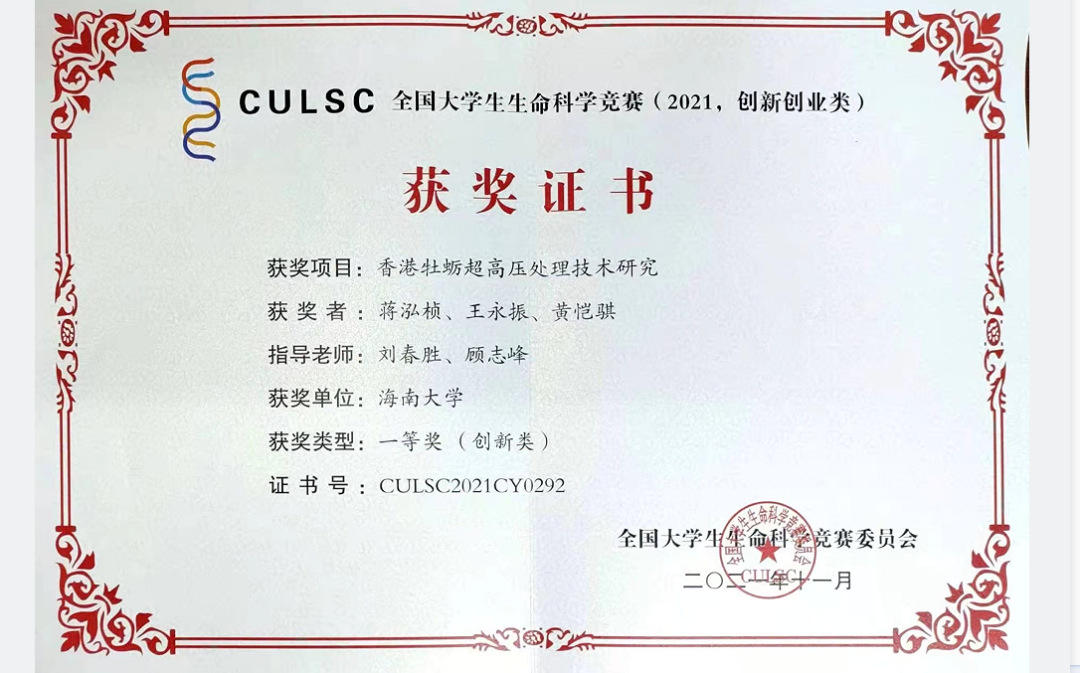 作品全称:香港牡蛎超高压处理技术研究