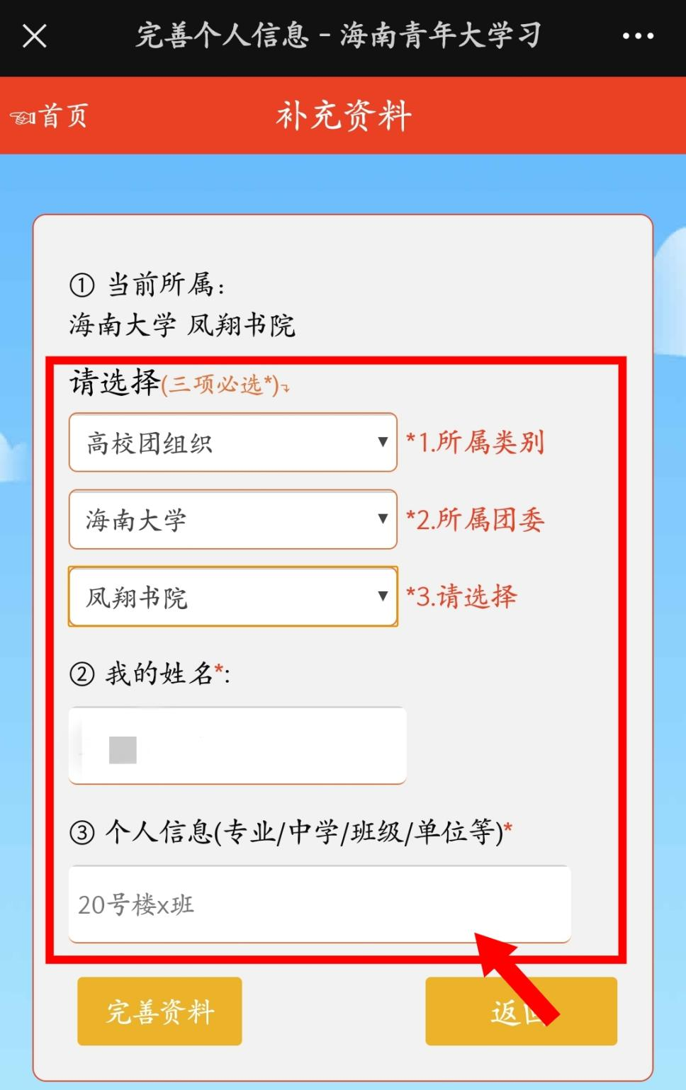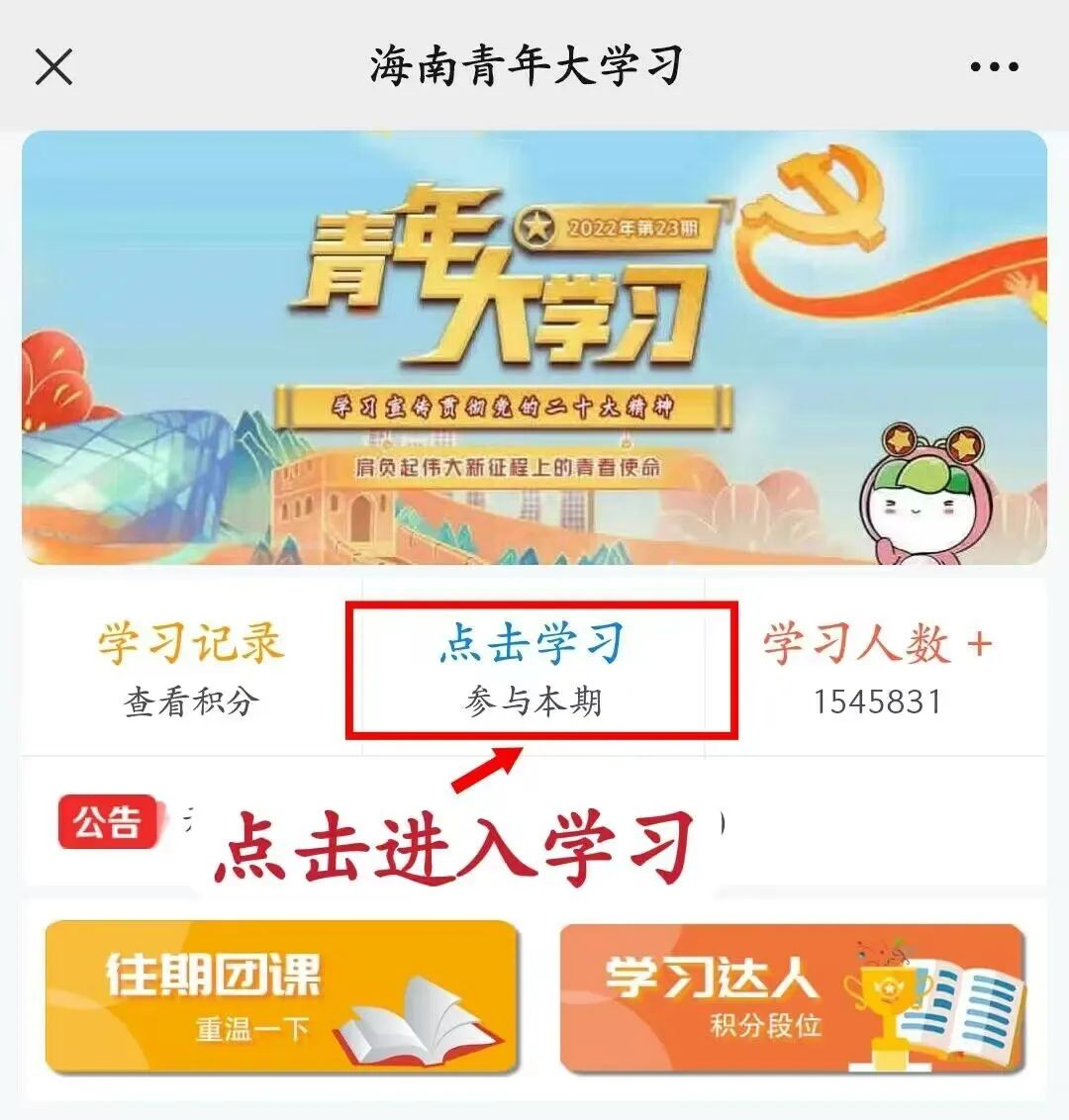 学习途径1:关注“海南共青团”微信公众号,点击菜单栏:大学习→青年大学习→点击学习→填写资料就可以学习啦!