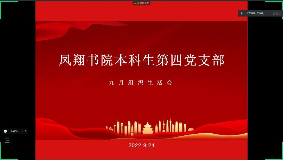 2022年9月24日10时,为进一步提高支部凝聚力,明确努力方向,yl9193永利官网凤翔书院本科生第四党支部线上开展了9月组织生活,本次会议由预备党员王泽政主持。