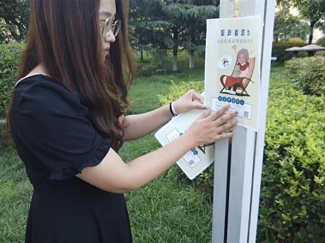 图为凤翔MCP小分队张贴宣传海报时的情景。宗琨璘 供图