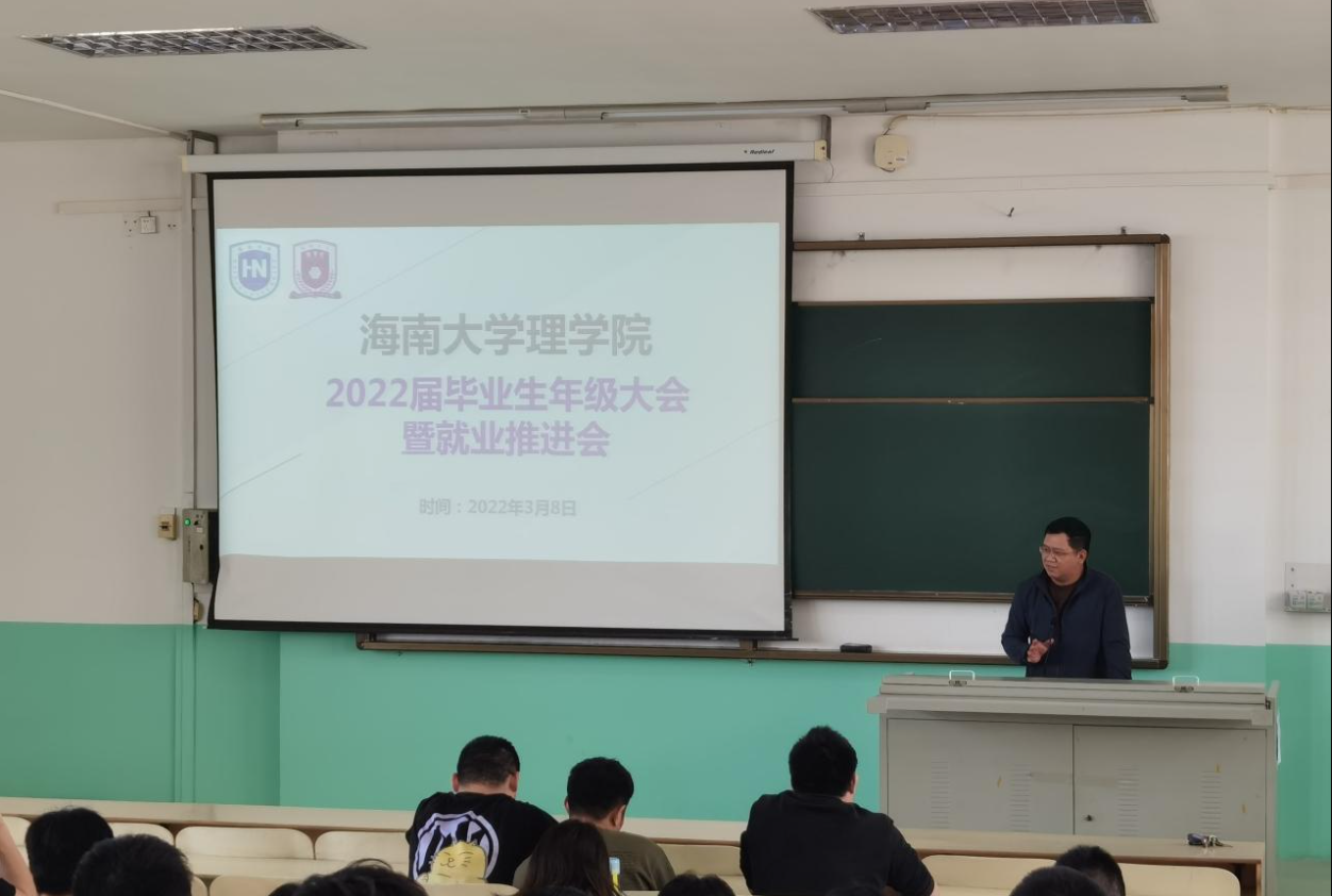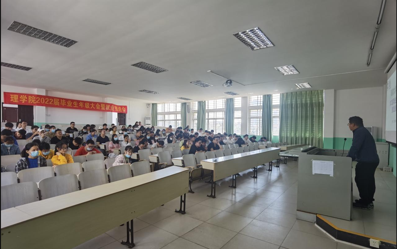3月8日上午,理学院顺利召开2022届毕业生年级大会暨就业推进会。理学院庾名槐副院长、辅导员马小卉和全体18级毕业生参加会议,大会特邀请武装部叶沪伟老师为应届毕业生做征兵宣讲动员,此次大会由马小卉老师主持。